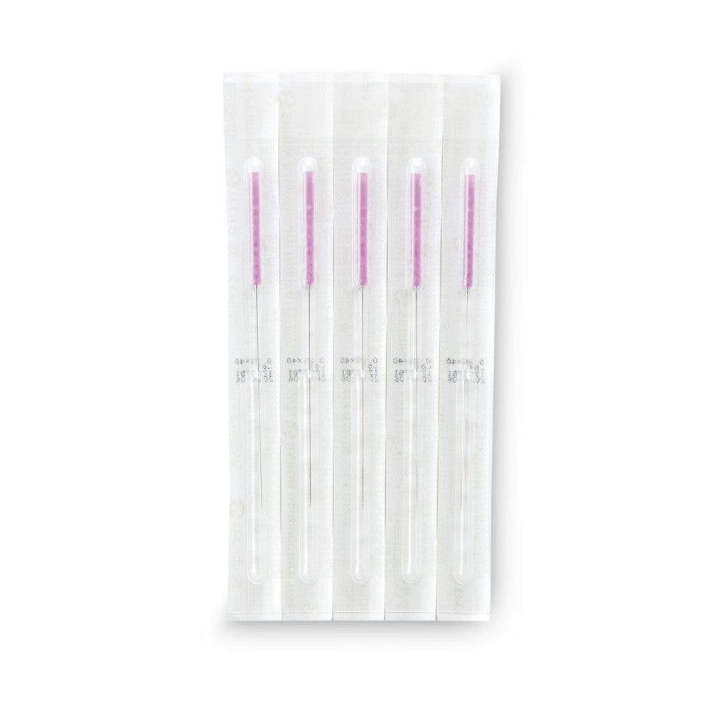 Damit der Therapeut für unterschiedliche Hautpunkte die jeweils passende Nadel zur Verfügung hat, gibt es die SEIRIN® B-Typ Nadeln in 5 unterschiedlichen Stärken und Längen. Diese unterscheiden sich durch die Farbe der Griffe. Eine Schachtel enthält 100 Nadeln einer Größe.
